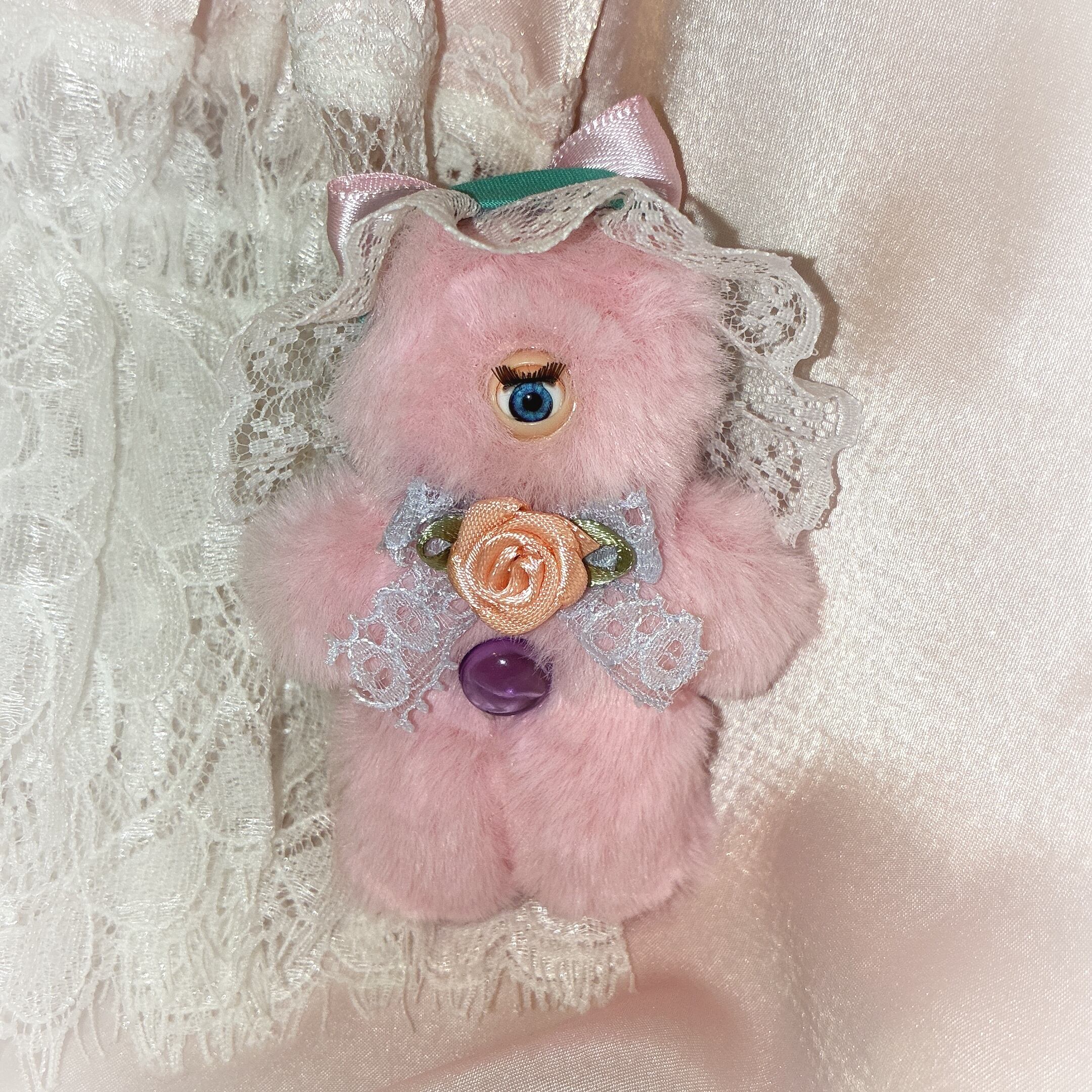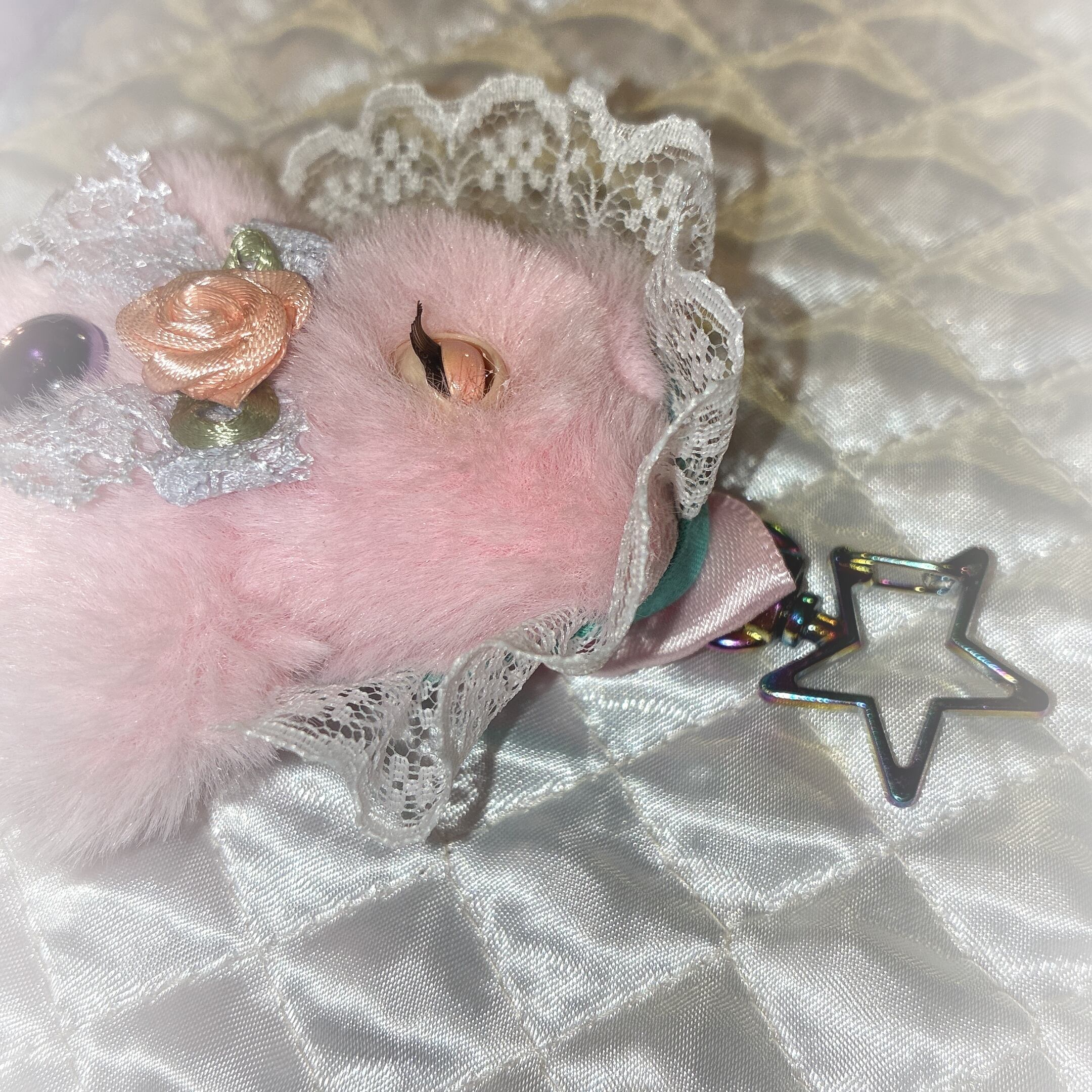 頭の後ろにカニカンが付いている、チャーム仕様になっています。